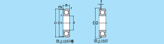 注意:注:在止动槽和止动环外环的最低容许倒角尺寸rN如下